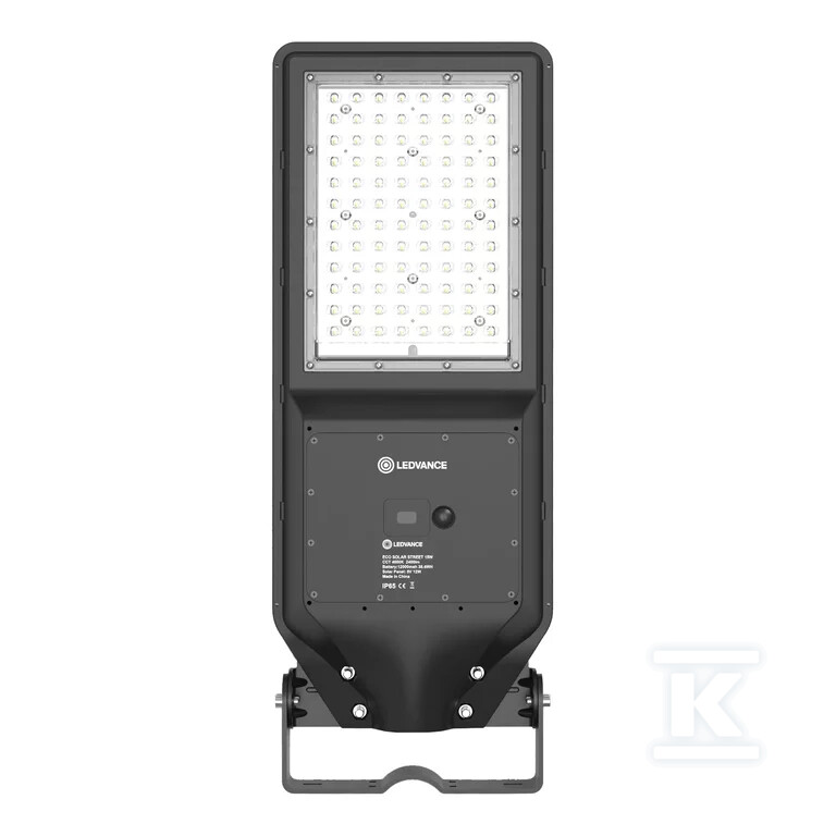 Світильник оснащений батареєю LiFePO4, призначеною для моделей STREETLIGHT SOLAR, що забезпечує його надійність та тривалий термін служби. Комплектний набір монтажних аксесуарів та пульт дистанційного керування входять до продукту, що полегшує встановлення та використання. Ступінь захисту IP65 гарантує стійкість до атмосферних впливів, що дозволяє безпечно використовувати світильник на вулиці протягом усього року. Вага світильника становить 3,44 кг, а його розміри – 0,08 x 0,25 x 0,65 м. Продукт підпадає під 3-річну гарантію виробника LEDVANCE.