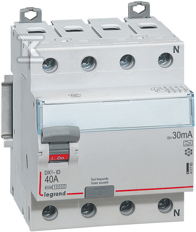 Цей чотириполюсний диференційний вимикач серії DX3 від Legrand — ключовий елемент, що забезпечує захист людей та обладнання в електричних установках. Призначений для забезпечення кіл з номінальним струмом 40 А, він реагує на струми витоку значенням 30 мА, ефективно захищаючи від електричного удару. Виконаний у типі A, він ідеально підходить для використання з пристроями, що генерують змінний струм частотою 50 Гц.