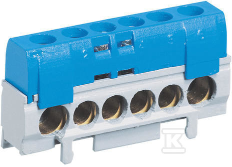 Колодка призначена для підключення проводів перетином від 6 мм² до 35 мм², що робить її універсальним елементом у багатьох установках. Має один вхід (10-35 мм²) та п'ять виходів (6-25 мм²), що дозволяє розділяти живильний контур. Конструкція з ізоляцією IP2X захищає від випадкового дотику, підвищуючи безпеку експлуатації. Монтаж на DIN-рейку спрощує встановлення та забезпечує стабільність.