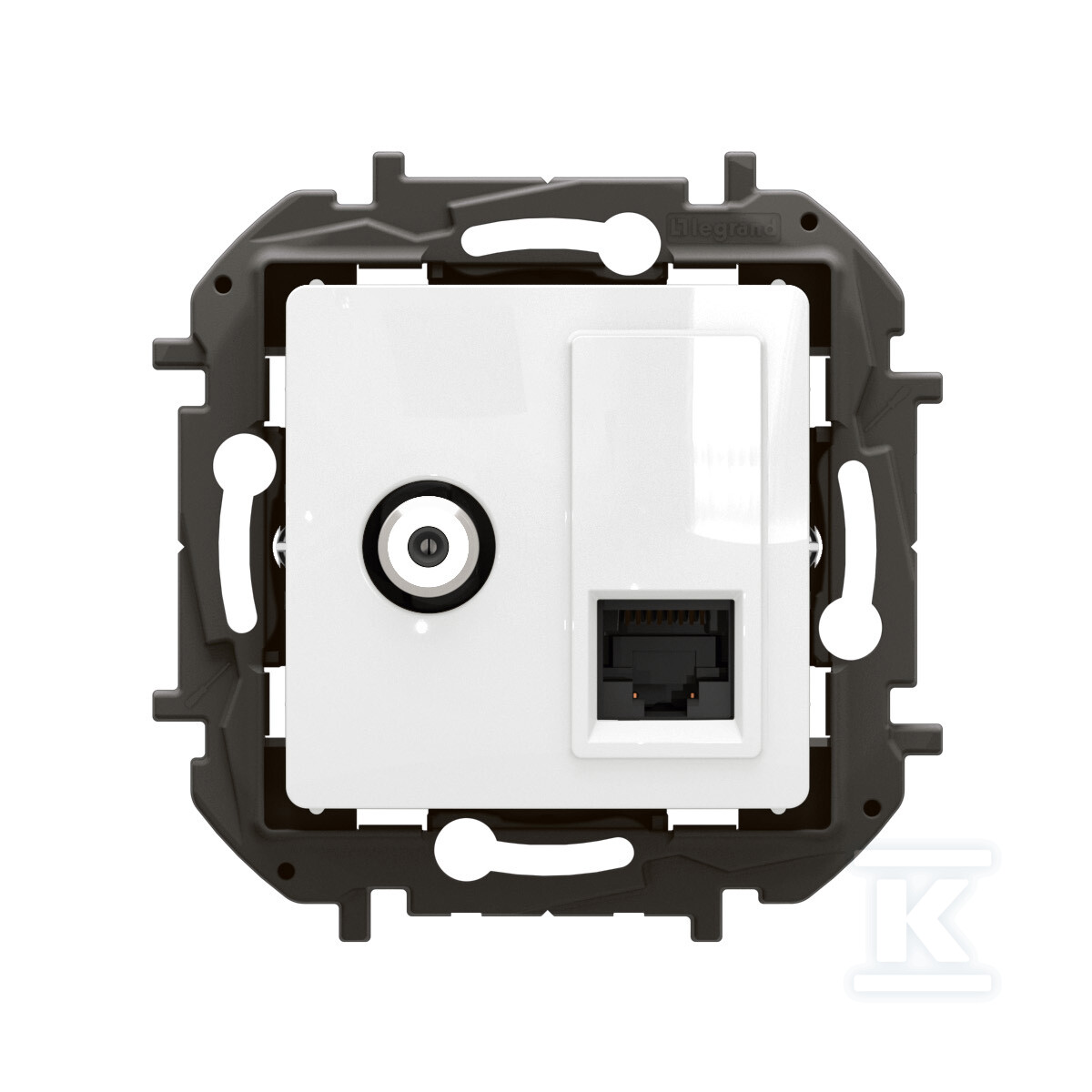 Ця розетка поєднує в собі функціональність телевізійної розетки типу "F" та з'єднання RJ-45 категорії 6 UTP, пропонуючи комплексне рішення для сучасних інсталяцій. Продукт призначений для прихованого монтажу і ідеально підійде як для новобудов, так і для об'єктів, що модернізуються. Біла колірна гама забезпечує естетичний вигляд і легке поєднання з різними інтер'єрами.