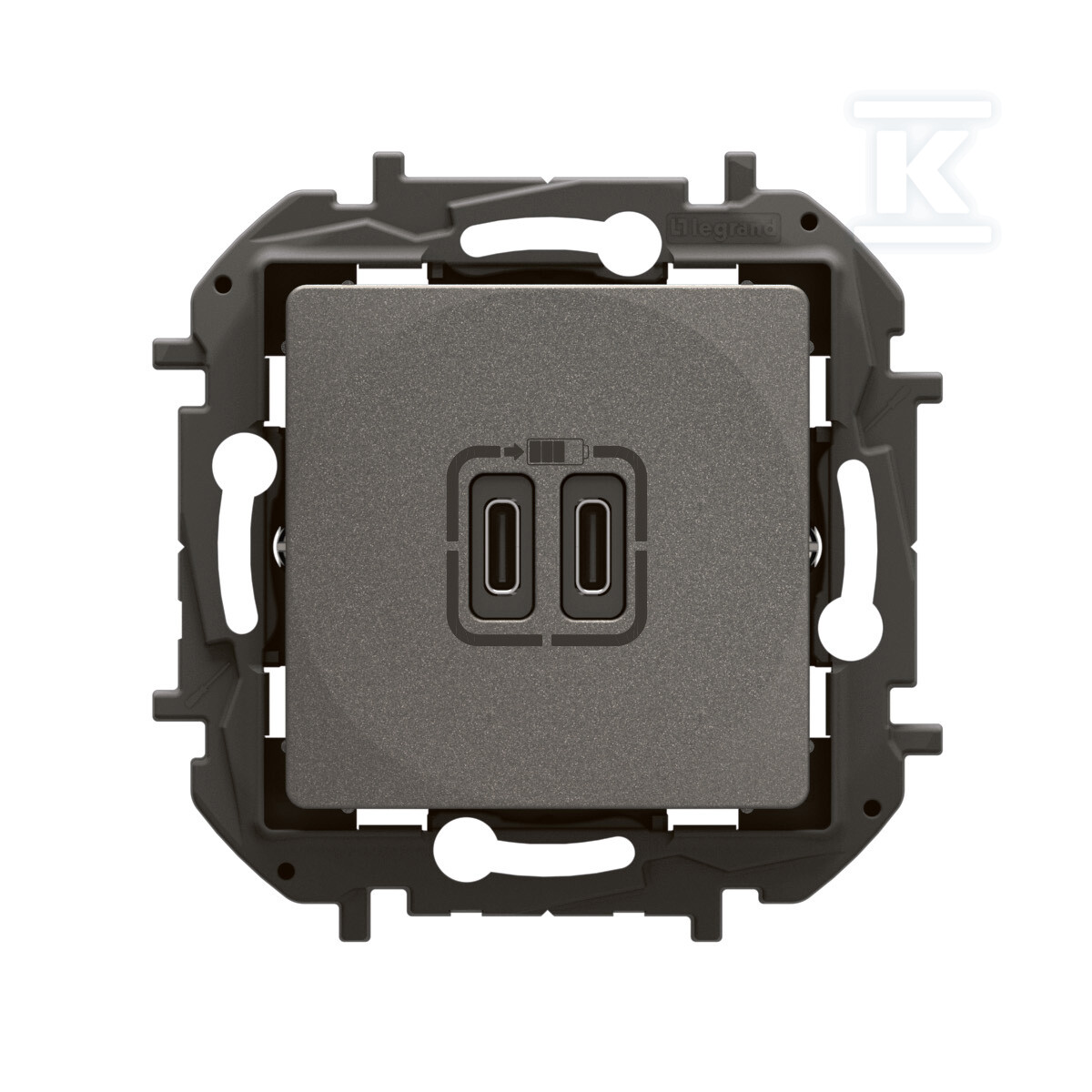 Розетка 2xUSB тип C+C-3A сталева, НОВА NILOE NP3404MG