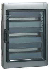 Розподільний щит призначений для навісного монтажу та пропонує простір для 3 рядів модулів, по 18 модулів у кожному. Виготовлений з міцного синтетичного матеріалу у сірому кольорі (RAL 7046), він стійкий до корозії та механічних пошкоджень. Використання циліндричного замка підвищує безпеку та захищає від неавторизованого доступу. Прозора кришка спрощує візуальну перевірку стану установки без необхідності відкривання корпусу.