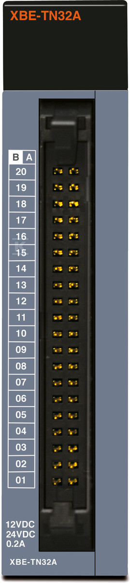 Модуль XBE-TN32A призначений для монтажу всередині корпусу контролера LS Electric. Комунікація з модулем відбувається через системну шину, що забезпечує швидкий і надійний перенос даних. Виходи транзисторні NPN дозволяють керувати навантаженнями, що вимагають напруги 0-24V DC. Для правильного підключення модуля необхідний спеціальний кабель XBE-TN32A, який забезпечує з'єднання з клемною колодкою. Завдяки цьому монтаж і конфігурація прості та інтуїтивно зрозумілі.