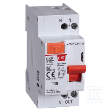Пристрій захисного відключення (ПЗВ) з додатковим захистом серії RKP 1P+N 16A характеристика B диференціальний струм 30mA RKP 1P+N B16A 30mA RKP 1P+N B16A 30MA