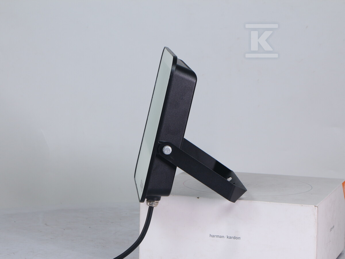Цей прожектор вирізняється міцною конструкцією з алюмінію та високим ступенем захисту IP65, що гарантує стійкість до атмосферних впливів та пилу. Широкий кут освітлення 100° забезпечує широкий радіус дії, ідеальний для освітлення великих площ. Компактні розміри полегшують монтаж у різних місцях.