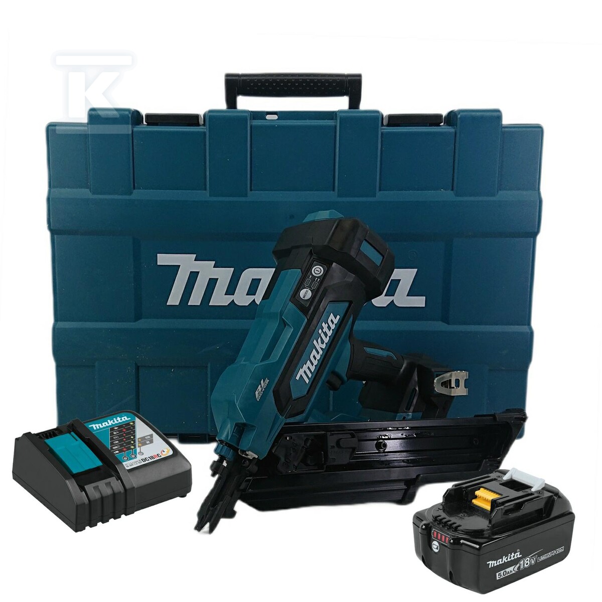 Комплект постачається як повноцінний робочий блок "прямо з коробки". Всередині знаходиться літій-іонний акумулятор ємністю 5,0 А·год, який забезпечує достатньо енергії для виконання великої кількості з'єднань перед необхідністю повторного заряджання. До нього приєднано зарядний пристрій, що дозволяє швидко повернути інструмент у робочий стан після короткої перерви. Уся система базується на технології XPT (стійкість до пилу та вологи), яка захищає механізм від забруднень, типових для каркасного будівництва (деревний пил), що зменшує час простою на обслуговування та подовжує термін служби пристрою в складних будівельних умовах.