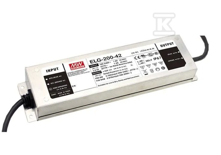 Блок живлення LED ELG-200-48DA-3Y від Mean Well – це надійне джерело енергії для систем освітлення LED. Розроблений з урахуванням довговічності та ефективності, він чудово підійде як для комерційних установок, так і для домашнього використання. Його металевий корпус зі ступенем захисту IP67 забезпечує стійкість до атмосферних впливів і дозволяє встановлювати його всередині та зовні приміщень.