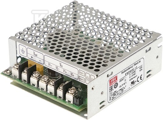 Модуль ERDN40-24 призначений для співпраці з блоками живлення 24V, що дозволяє створити систему, в якій у разі виходу з ладу одного блоку живлення, другий автоматично переймає його функцію. Це рішення знаходить застосування в критичних додатках, таких як системи автоматизації промисловості, відеоспостереження, системи сигналізації або медичні прилади. Завдяки цьому, навіть у разі раптового зникнення напруги або пошкодження одного з елементів живлення, система залишається повністю працездатною. Вбудовані релейні з'єднання та світлодіоди інформують про стан роботи системи – вказують на можливу несправність основного або запасного джерела живлення.