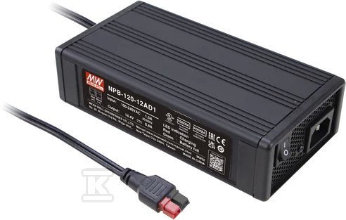 Це просунутий настільний зарядний пристрій, призначений для ефективного заряджання кислотно-свинцевих, літій-іонних (включаючи нікель-кобальтові та LiFePO4) акумуляторів. Модель NPB-120-12TB пропонує потужність 103W і вихідну напругу 13.8V при струмі 6.8A, що робить його універсальним рішенням як для професіоналів, так і для домашніх користувачів. Пристрій вирізняється широким діапазоном вхідної напруги (90-264VAC), завдяки чому сумісний з різними стандартами мережі.