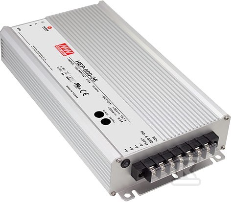 Блок живлення HEP-600-24 оснащений рядом захистів: від короткого замикання, перевантаження, надмірної напруги та термічного захисту. Вбудована функція активного PFC (Power Factor Correction) покращує якість споживаного струму та зменшує перешкоди в електромережі. Регулювання вихідної напруги та струму за допомогою потенціометрів дозволяє точно налаштувати параметри живлення відповідно до специфічних потреб застосування. Ефективність блоку живлення досягає 96%, що мінімізує втрати енергії та знижує експлуатаційні витрати. На блок живлення надається 5-річна гарантія, що підтверджує його високу якість та надійність.