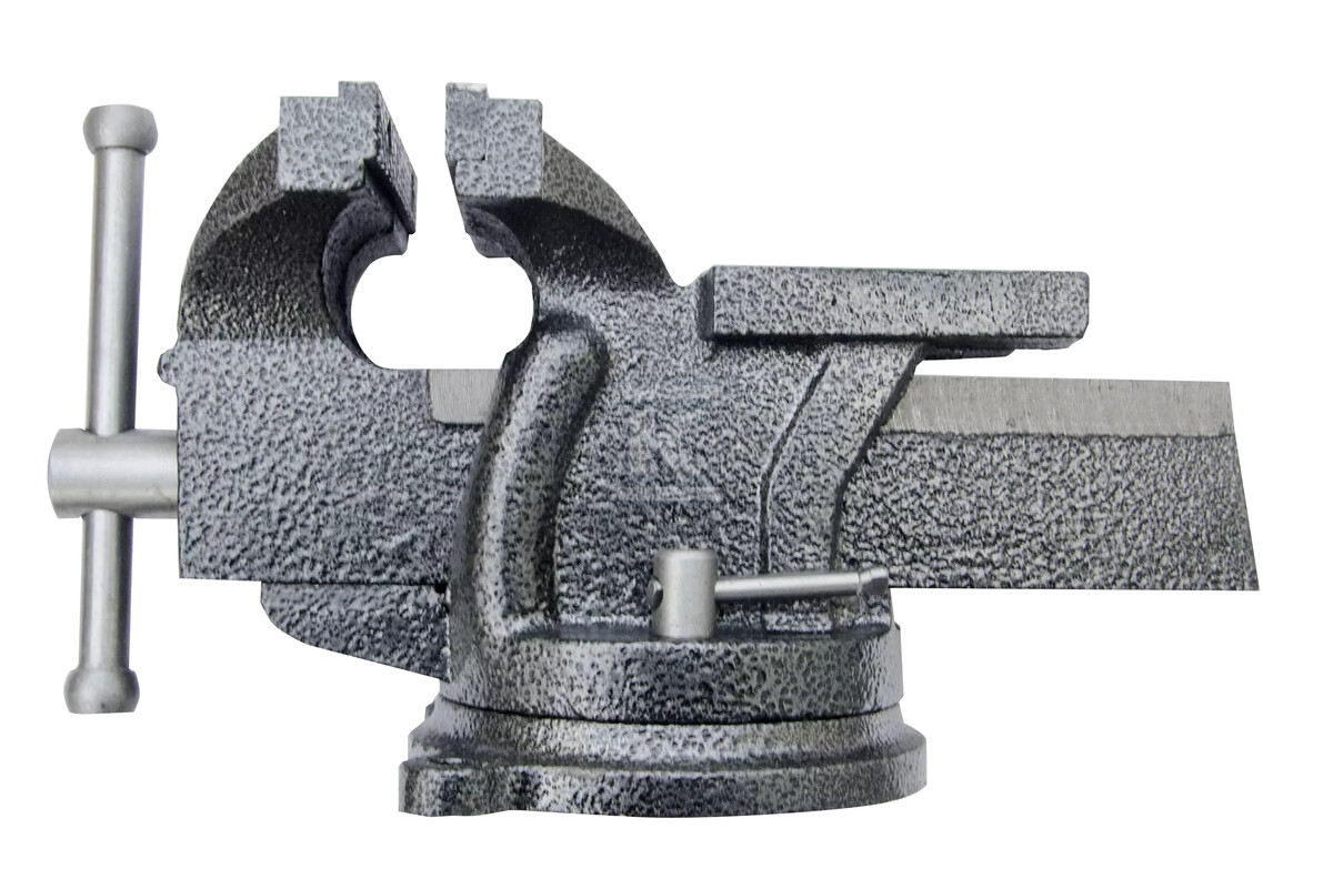 Лещата оснащені основою, яка дозволяє обертатися на будь-який кут у горизонтальній площині - корпус і губки виготовлені з високоякісного чавуну - вкладиші губок, індукційно загартовані та рифлені, гарантують надійне та безпечне кріплення. Поворотна основа губок 15 см