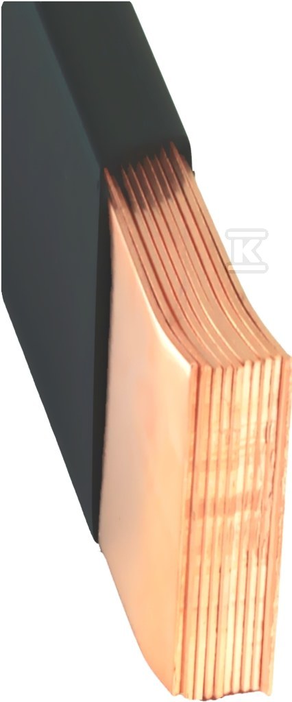 - Зменшений ефект поверхневого струму – завдяки стрічковій структурі ефективний перетин на 60% менший, ніж у звичайного мідного проводу з тим самим струмом.