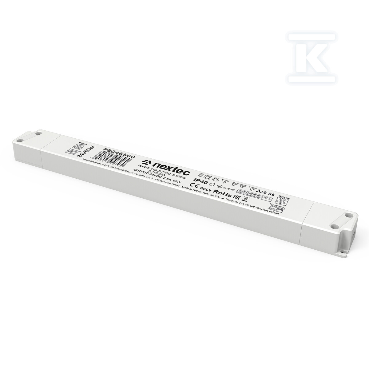 Блок живлення для монтажу LUNA 24V, IP40, 2,5A, 60W PB046560