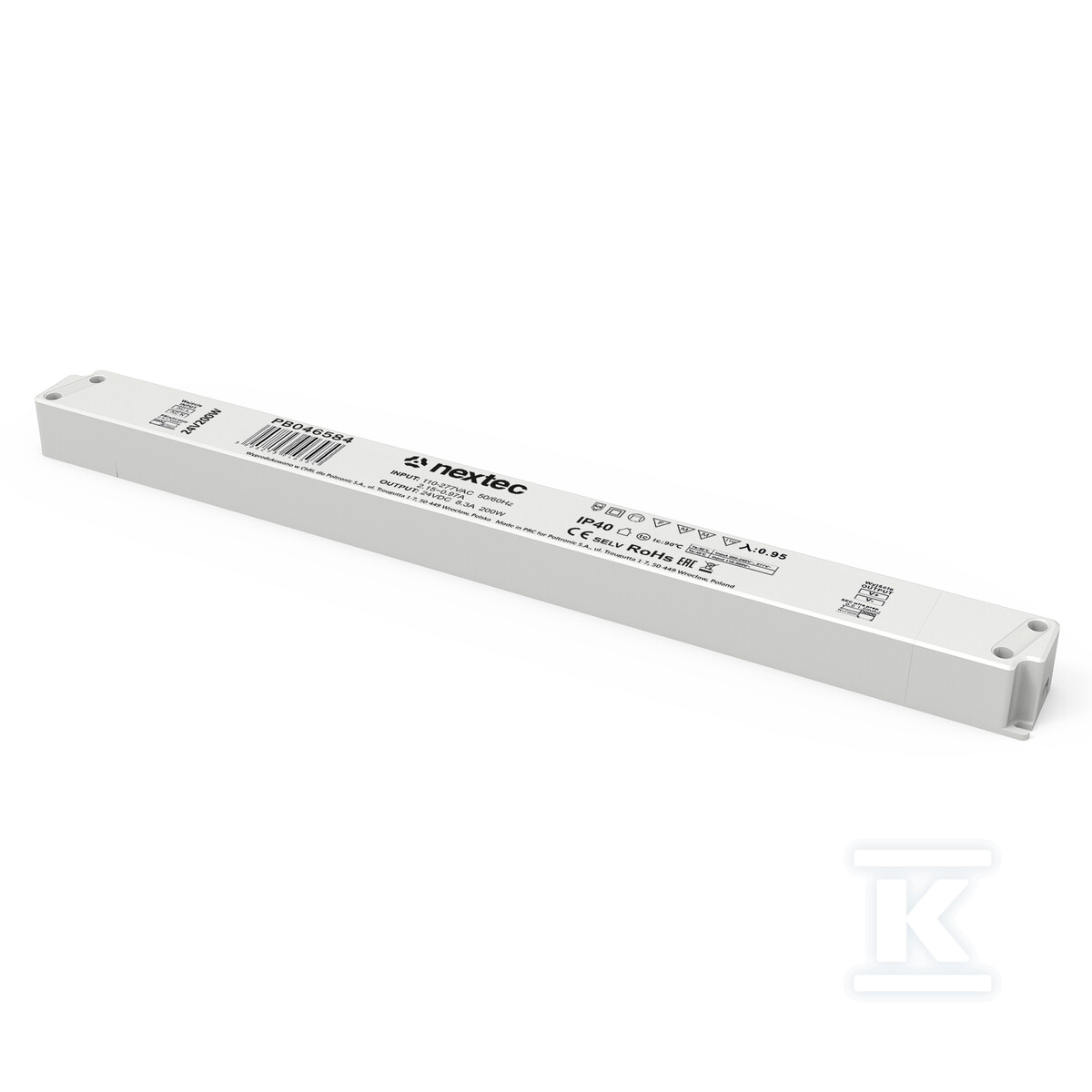 Корпус з пластику забезпечує легкість та полегшує монтаж у тісних просторах – в алюмінієвих профілях, шафках або за меблями. Клас захисту IP40 захищає від випадкового дотику та забезпечує безпечну роботу в сухих умовах. Цей блок живлення особливо рекомендований для декоративного, меблевого освітлення та в DIY проектах.