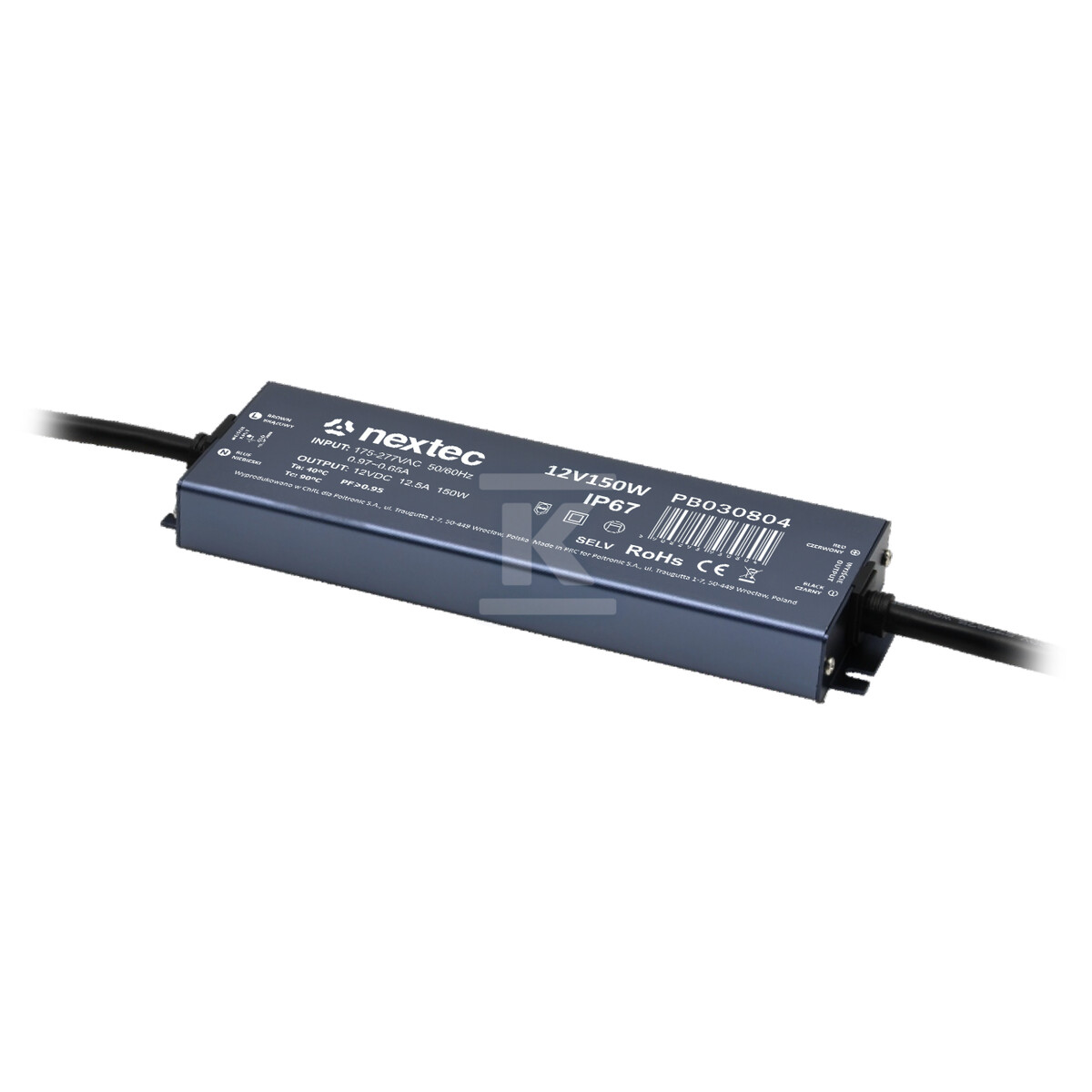 Блок живлення потужністю 150W і вихідним струмом 12,5A дозволяє підключити навіть розширені системи освітлення. Виготовлений з високоякісних компонентів, забезпечує стабільну вихідну напругу та захищає підключені пристрої від перенапруг та коротких замикань. Його конструкція була розроблена з урахуванням довговічності та надійності, що перекладається на тривалий термін служби.