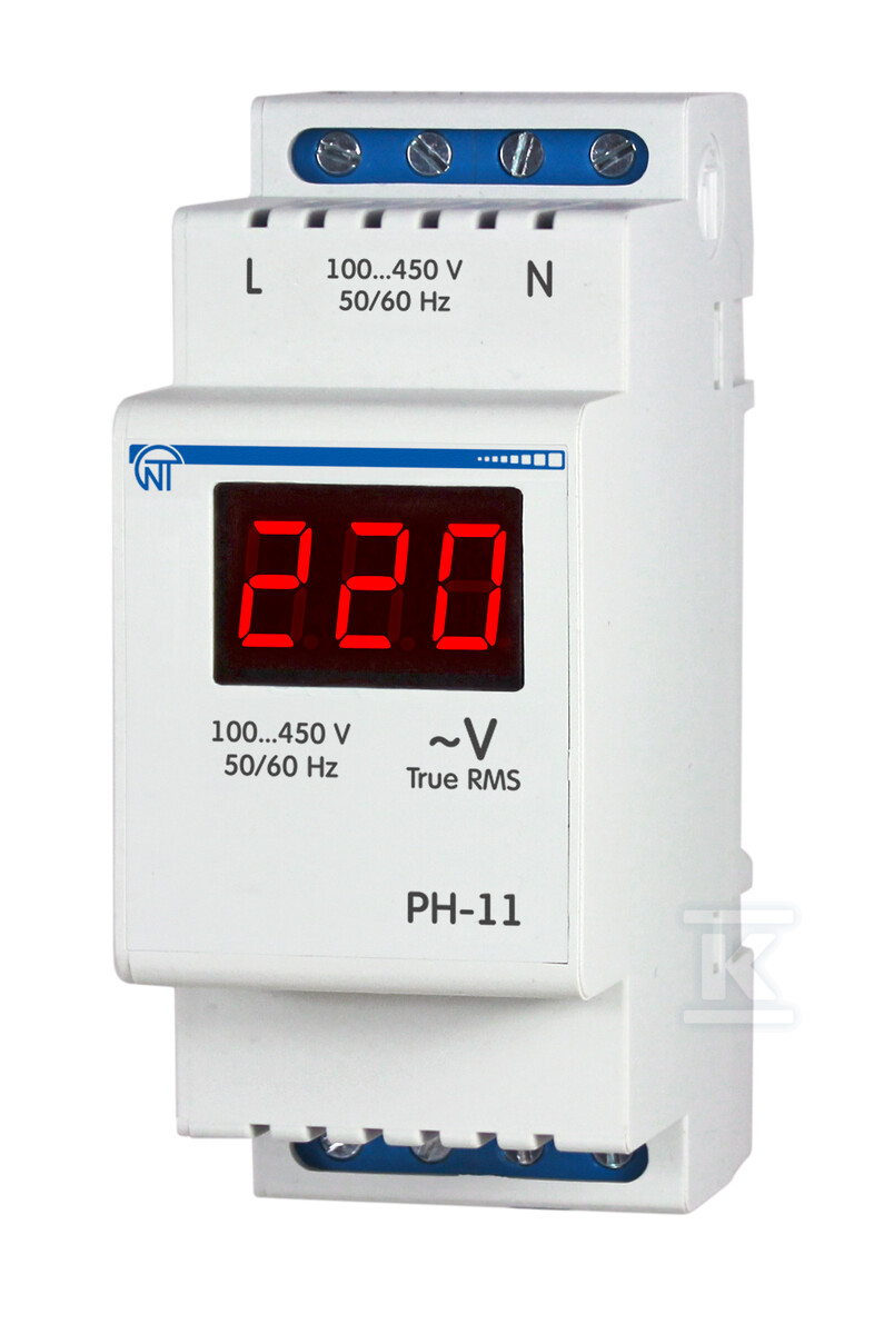 Це пристрій виробництва Novatek Electro, створений для прецизійного вимірювання та відображення значення напруги в однофазних мережах. PH-11 є незамінним елементом моніторингу електричних інсталяцій, знаходячи застосування як у розподільчих щитах, розподільчих панелях, так і в промислових та домашніх інсталяціях. Швидка та точна оцінка напруги перекладається на безпеку та надійність всієї системи.