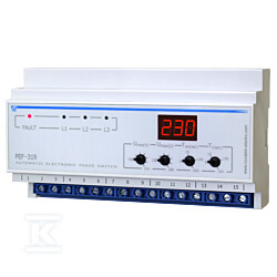 Перемикач фаз PEF-319 монтується на DIN-рейку в розподільній шафі. Він призначений для співпраці з трифазними чотирипровідними мережами (3x400 В + N) та однофазними споживачами з напругою 230/240 В, 50 Гц. Знаходить застосування всюди, де потрібен захист чутливого обладнання від перешкод в електричній мережі – в будинках, майстернях, промислових підприємствах чи офісах. Завдяки своїй універсальності є ідеальним рішенням як для нових установок, так і для модернізації існуючих систем живлення.
