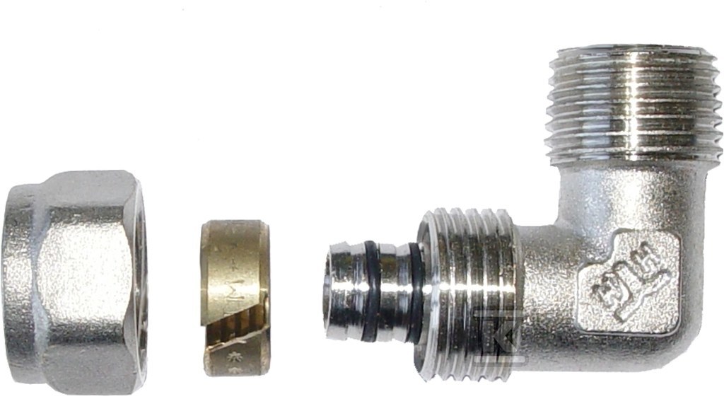 Нікельоване кручене коліно для багатошарових труб із зовнішньою різьбою 16 мм x 1/2" PA-05-002-O