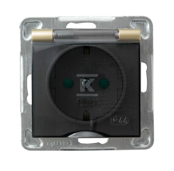 Бризгозахищена розетка з заземленням Schuko IP-44 з захисними кришками для струмових каналів, прозорий кришечка — ЗОЛОТИЙ МЕТАЛІК ІМПРЕСІЯ GPH-1YSP/M/28/D