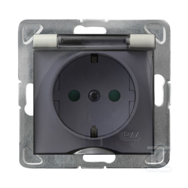 Бризгозахищене гніздо з заземленням Schuko IP-44 з захисними кришками для контактів, прозорий кришечка — ECRU IMPRESJA GPH-1YSP/M/27/D