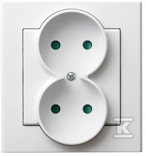 Подвійна розетка з захисними пластинами та повною рамкою – підштукатурний монтаж, білий матовий