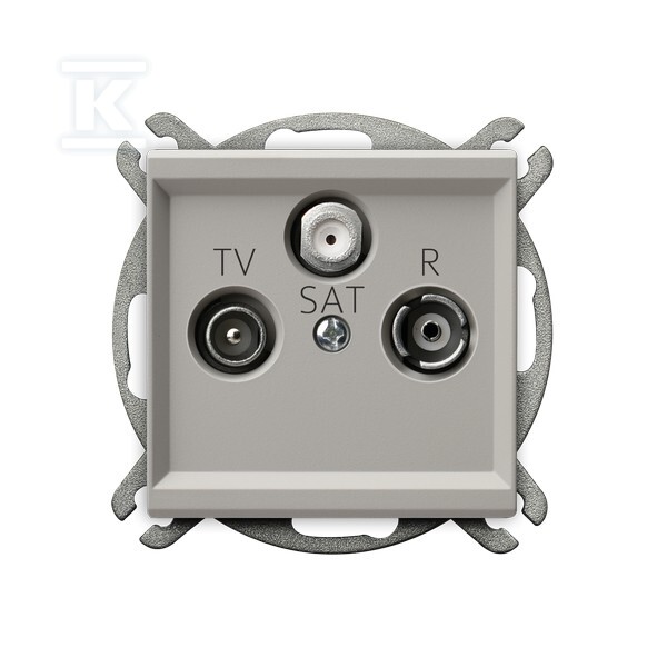 Розетка підтримує одночасне підключення сигналів ТВ (наземного), R (радіо) та SAT (супутникового), розділяючи їх на окремі виходи. Згасання взаємодії на виході SAT становить 1,5–2 дБ, на ТВ — 1,0–1,5 дБ, а на R — 1,5 дБ — що забезпечує мінімальну втрату якості сигналу. Ефективність екранування перевищує 65 дБ, а діапазон частот охоплює 5 МГц до 2,4 ГГц — достатньо для сучасних цифрових систем. Постійний струм може проходити через вихід SAT для живлення конвертера супутникової антени — без додаткових проводів.