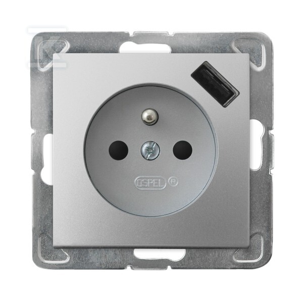 Одинарна розетка з заземленням та екрануванням токових шляхів, з USB-зарядкою — СРІБЛО ІМПРЕСІЯ GP-1YZPUSB/M/18