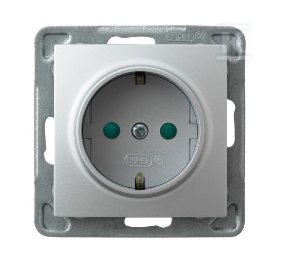 Одинарна розетка зі заземленням Schuko з захисними пластинами для струмових каналів — СРІБЛО Impresja GP-1YSP/M/18