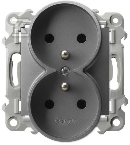 Подвійна розетка з заземленням, модуль без рамки - СІРИЙ МАТОВИЙ, SAFIR GP-2ZRZ/M/70