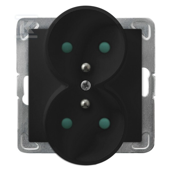 Подвійна розетка з заземленням та перегородками для струмових шин, модуль без рамки — матовий чорний IMPRESJA GP-2YRAZP/M/33