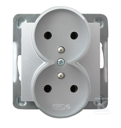 Подвійна розетка з заземленням, модуль без рамки – срібний