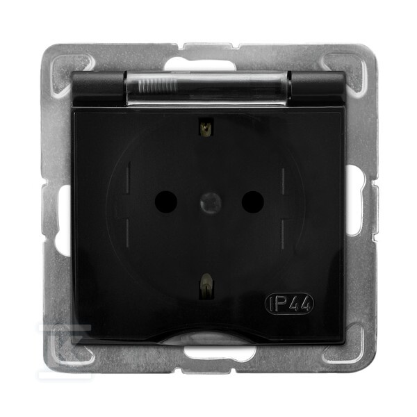 Водонепроникна розетка з заземленням Schuko IP-44, прозорий кришечка — матовий чорний IMPRESJA GPH-1YS/M/33/D