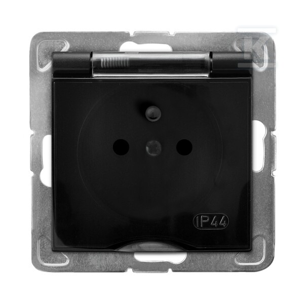 Вологозахищена розетка з заземленням IP-44 прозора кришка - чорний матовий IMPRESJA GPH-1YZ/M/33/D