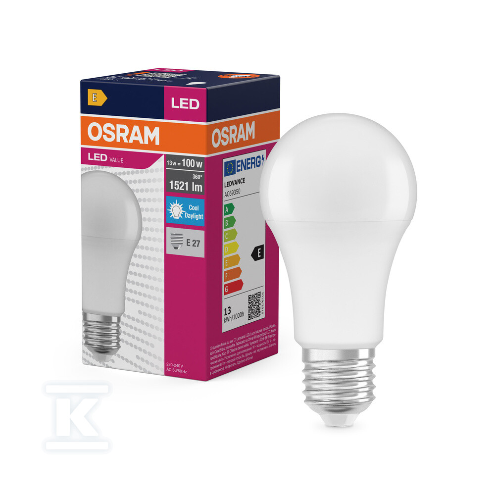 Лампа LED VALUE CLASSIC A – це енергоефективне рішення для домашнього та професійного освітлення. Вона замінює традиційну лампу 100W, споживаючи лише 13W енергії, водночас генеруючи вражаючий світловий потік 1521 люмен. Це поєднання дозволяє знизити витрати енергії при збереженні яскравого та чіткого світла.