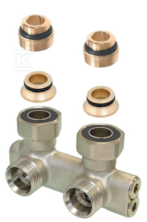 З'єднувач має приєднання 1/2" GZ та 3/4" NZ і 3/4" GZ, що дозволяє легко підключити до різних типів труб та арматури опалення. У комплекті є муфти 1/2" GZ x 3/4" GZ та вставки Euroconus для радіаторів з приєднаннями 3/4" NZ, що полегшує монтаж і забезпечує надійне з'єднання.