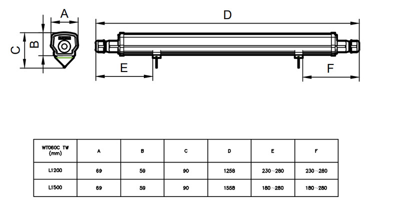 Герметичний світильник WT060C LED36S/840 PSU TW1 L1200mm 3600lm наскрізний 911401876780