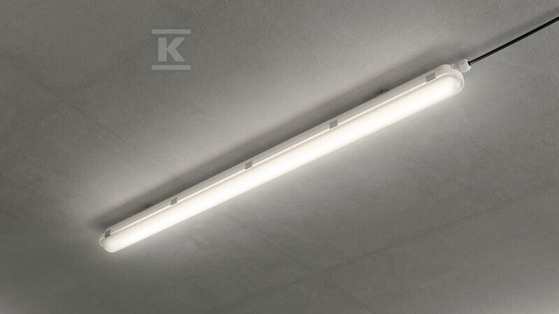 Цей герметичний світильник LED, позначений номером каталогу 911401876780, є надійним та енергоефективним рішенням для освітлення промислових приміщень, складів, паркінгів та інших місць, схильних до вологи, пилу або механічних пошкоджень. Виготовлений з міцного полікарбонату, забезпечує довготривалу та безвідмовну роботу. Його наскрізна конструкція полегшує монтаж та підключення в безперервній системі.