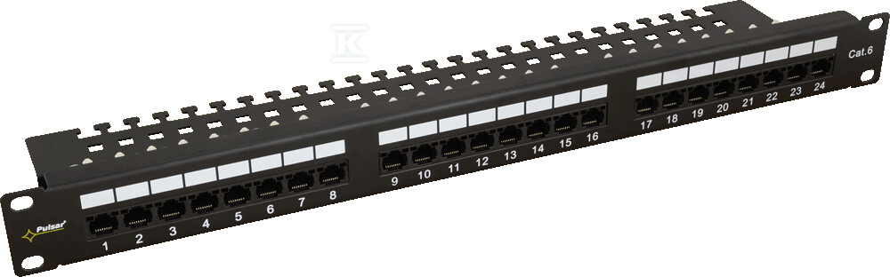 Панель пропонує 24 порти RJ45, що дозволяє підключити велику кількість мережевих пристроїв. Виконаний з міцного сталевого листа (1,2 мм) пофарбованого порошковою фарбою в чорний колір RAL 9004, гарантує довговічність і стійкість до пошкоджень. Монтаж здійснюється в стандартній шафі rack 19" висотою 1U, а в комплекті є гвинти M6 та монтажні кошики для полегшення встановлення. Затискна планка LSA, змонтована горизонтально, полегшує підключення провідників за допомогою інструменту для кріплення.