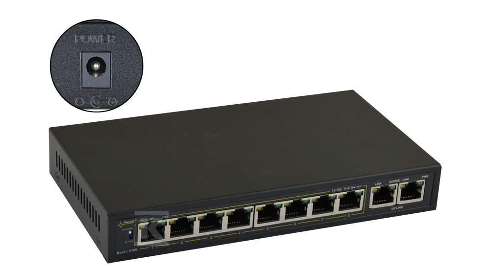 Цей 10-портовий PoE-комутатор марки Pulsar, модель S108WP, є надійним рішенням для живлення та передачі даних у системах IP-відеонагляду. Призначений для співпраці з камерами, сумісними зі стандартом IEEE 802.3af/at, він забезпечує гнучке та ефективне створення мережі. Пристрій постачається без блока живлення, що дає користувачеві свободу вибору відповідної моделі, адаптованої до його потреб. У комплекті є кріпильні пластини, що полегшують встановлення в різних місцях.