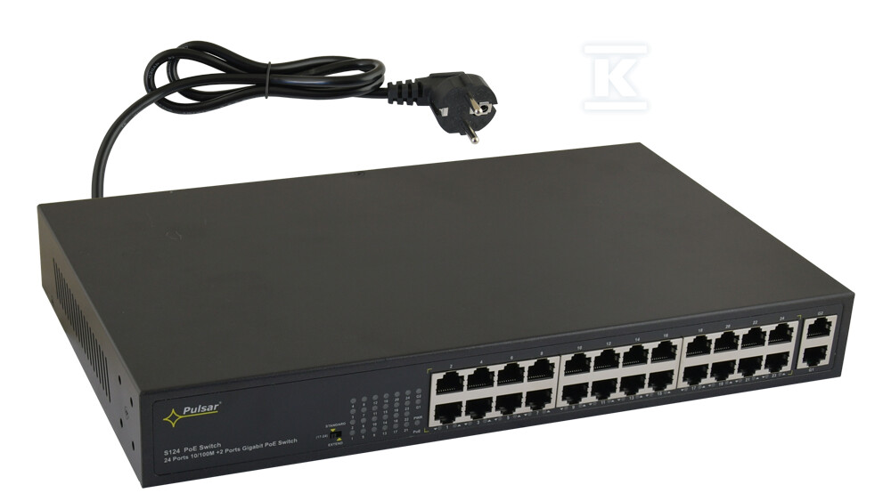 PoE-комутатор S124 – це надійне рішення для живлення та підключення IP-камер та інших мережевих пристроїв, що використовують технологію Power over Ethernet (PoE). Він забезпечує ефективне управління енергією та спрощує встановлення, усуваючи необхідність використання окремих кабелів живлення. Завдяки 24 портам PoE, комутатор дозволяє створити розширену систему відеоспостереження або IP-мережу без необхідності використання додаткових блоків живлення.