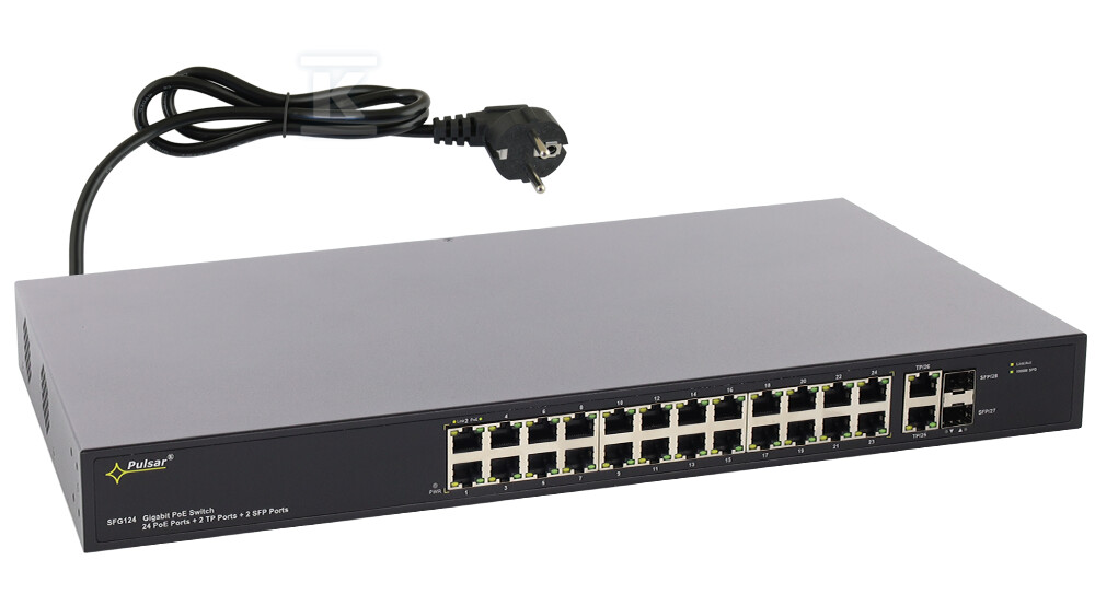 Цей 24-портовий PoE-комутатор від Pulsar є ідеальним рішенням для систем відеоспостереження, де ключовим є живлення камер безпосередньо через мережевий кабель. Пристрій дозволяє підключити до 24 IP-камер, усуваючи необхідність використання додаткових блоків живлення та спрощуючи встановлення. Завдяки цьому ви заощаджуєте час і гроші, а система працює більш стабільно.