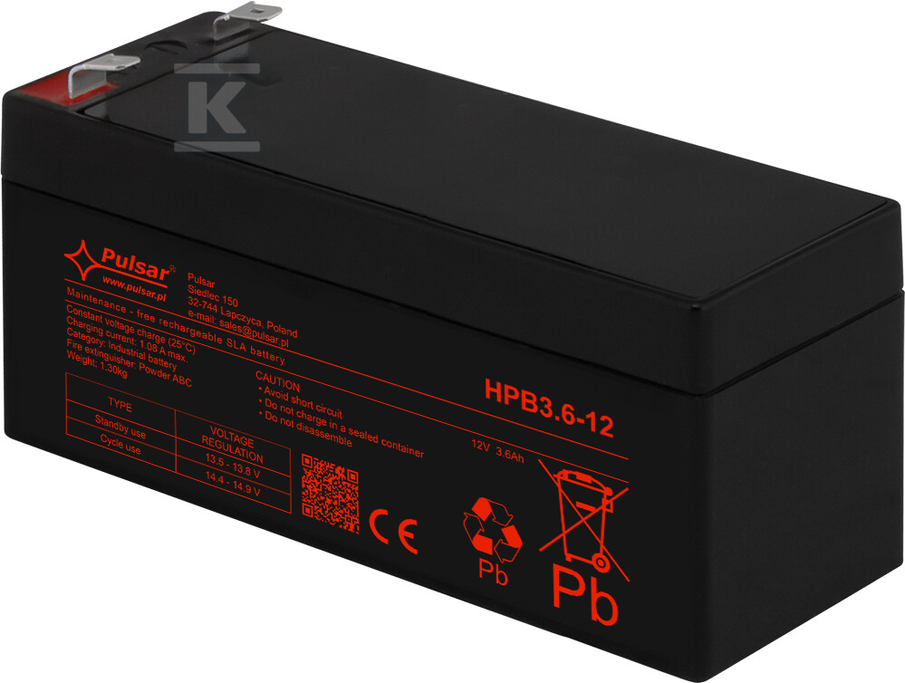 Цей акумулятор 12V з ємністю 3,6Ah серії HPB є надійним джерелом енергії в системах, що вимагають безперервності живлення. Ідеально підійде для сигналізацій, систем контролю доступу, відеоспостереження (CCTV), джерел безперебійного живлення (UPS) та автоматики. Виконаний в технології AGM, характеризується високою продуктивністю та тривалим терміном служби.
