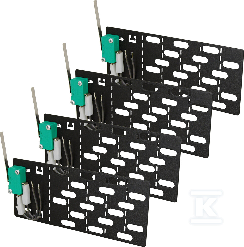 Набір складається з чотирьох пластин з вбудованими мікровимикачами. Монтаж простий і двоточковий – використовується стандартний профіль rack 19". У комплекті є всі необхідні монтажні елементи: 8 гвинтів M6 та кошики, що полегшує та прискорює інсталяцію. Тампер реагує на спробу відкриття дверей, надсилаючи сигнал тривоги до системи моніторингу або контролю доступу.