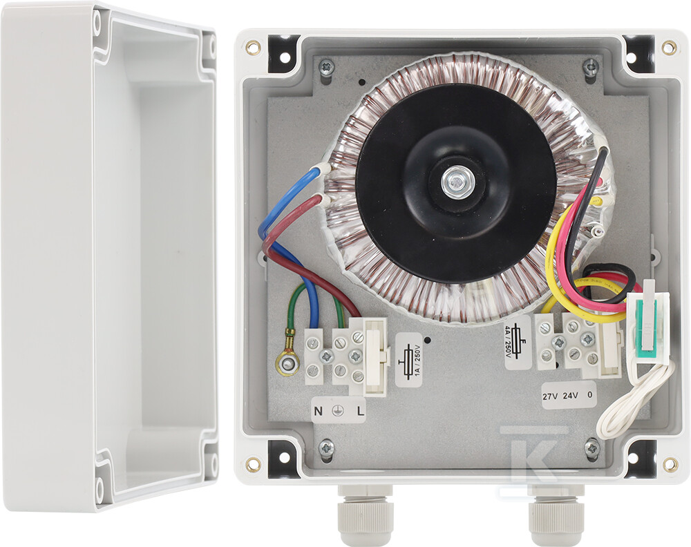 Блок живлення характеризується компактними розмірами 160 x 160 x 90 мм і легкістю монтажу. Він має два кабельні вводи діаметром 4-8 мм для введення проводів. Завдяки універсальній вхідній напрузі 230VAC/50Hz та вихідній 24VAC/4A або 27VAC/3.7A, він сумісний з більшістю поворотних камер, доступних на ринку. Призначений для роботи при температурах від -25°C до +40°C, він зарекомендує себе в різних умовах навколишнього середовища. Вбудований мікроперемикач tamper додатково підвищує рівень безпеки установки. Застосування всередині приміщень гарантує тривалу та безвідмовну роботу пристрою.
