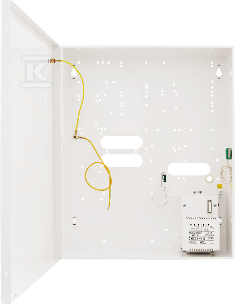 Корпус сумісний з блоками живлення TRP 40VA з вихідною напругою 16V або 18V. Може вмістити акумулятори ємністю до 17Ah/12V. Його внутрішні розміри дозволяють вільно розмістити елементи системи, а додатковий простір (90+8 мм) забезпечує місце для кабелів та можливих розширень. Конструкція корпусу дозволяє монтувати як акумулятори 7Ah, так і 17Ah.