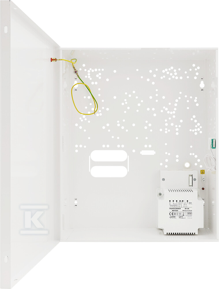 Вбудований трансформатор TRP 80VA (живлення 230V/AC) пропонує вихідні напруги 16V, 18V або 20V зі струмами відповідно 5.0A, 4.5A або 4.0A. Завдяки цьому корпус сумісний з широким спектром пристроїв різних виробників – від Satel і Risco до DSC, Paradox чи Pyronix. Можливість монтажу акумулятора 17Ah/12V забезпечує безперервність роботи системи навіть у разі зникнення мережевого живлення.