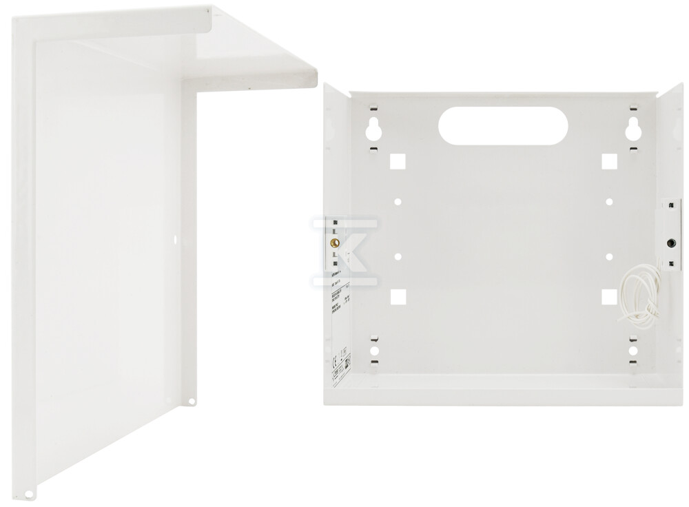 Конструкція обвідної виготовлена з сталевого листа DC01 товщиною 0,7 мм, що гарантує її міцність та стійкість до механічних пошкоджень. Додатковий антикорозійний захист та порошкове фарбування в білий колір RAL 9003 забезпечують довговічність та естетичний вигляд протягом тривалого часу експлуатації. Обвідна має вбудований тампер – вимикач, що сигналізує про спробу відкриття, що підвищує рівень безпеки всієї системи.