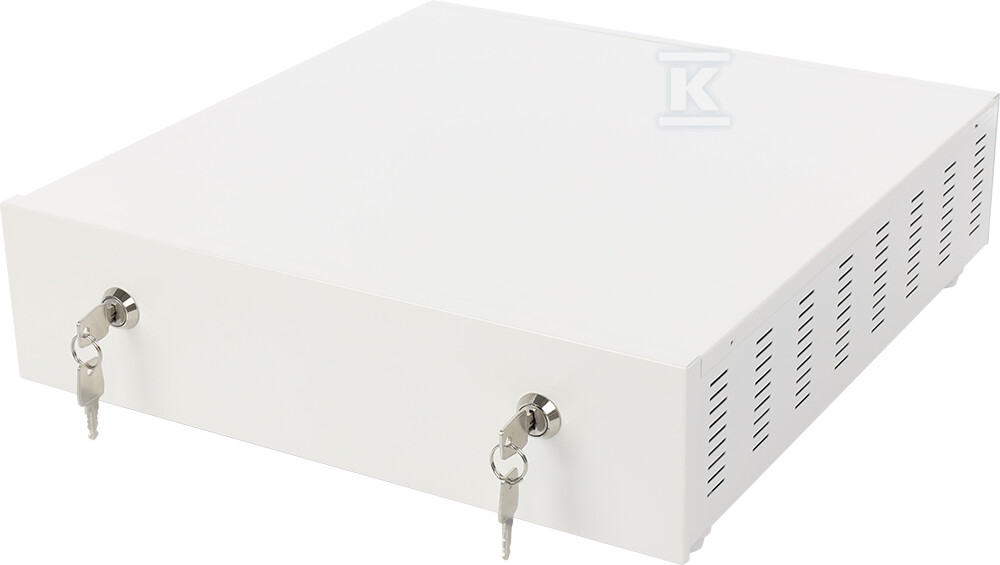 Корпус AWO447 призначений для горизонтального монтажу та пропонує простір для менших реєстраторів. Він оснащений двома замками з ключем та тампером (мікровимикачем, що сигналізує про відкриття корпусу), що є ефективним бар'єром для потенційних зловмисників. Крім того, існує можливість розширення за допомогою вентилятора ARAW45 (доступний окремо), що дозволяє підтримувати оптимальну температуру роботи пристроїв всередині.