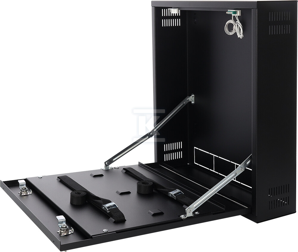 Обвідна виготовлена з міцного сталевого листа DC01 товщиною 1 мм, що гарантує її міцність і стійкість до механічних пошкоджень. Антикорозійний захист та чорний матовий колір (RAL 9005) забезпечують естетичний вигляд і довговічність. Завдяки вертикальній конструкції та невеликій глибині (121 + 14 мм), обвідна підійде для місць з обмеженим простором, де монтаж більших шаф rack неможливий. Додатково, вона має відстань від стіни заввишки 14 мм, що полегшує монтаж і покращує вентиляцію.