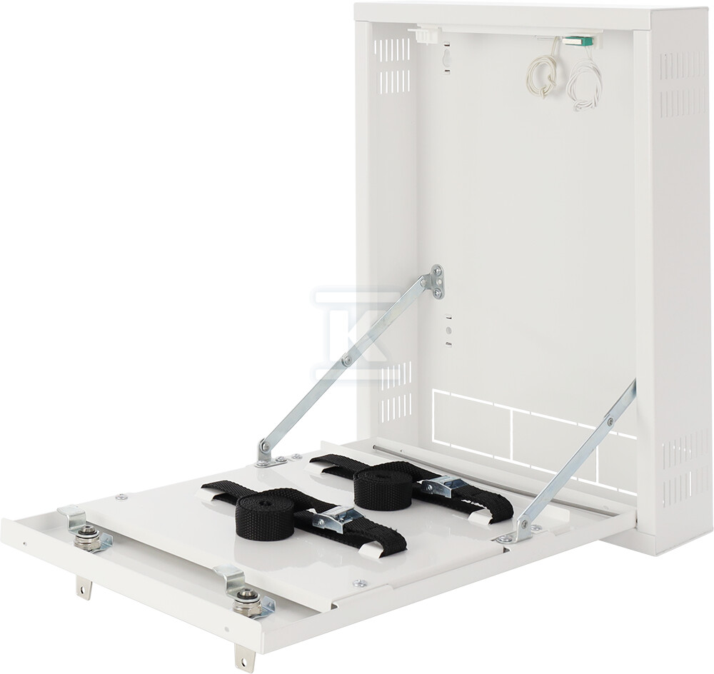 Обвідна призначена для настінного монтажу і характеризується невеликою глибиною, що дозволяє її встановлювати в місцях, де традиційні шафи rack є непрактичними. Вертикальна конструкція полегшує організацію простору, а передня панель, що відкривається, залишається в горизонтальному положенні, забезпечуючи вільний доступ до кнопок на панелі відеореєстратора. Всередині є тримач з монтажними ременями, який дозволяє стабільно закріпити відеореєстратор розмірами максимум 260 x 250 x 55 мм.